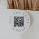 This chic gold typography buy the bride a drink QR code pin is perfect for a simple bachelorette party or bridal shower. The simple design features classic minimalist gold and white typography with a rustic boho feel. Customizable in any color.