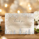 Thank your guest for coming to your winter wonderland wedding with this silver glitter sparkles snow and snowflakes thank you card, with silver shiny pine trees forest on an elegant winter faux gold metallic foil background.
