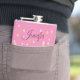 Chic girly flask done in tones of pink, with graphics of gold and light pink confetti and gold stiletto high heels. Personalize the text for yourself or as a great bridesmaid gift idea.