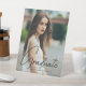 This chic graduation party pedestal sign features sophisticated handwritten black script over a trendy full photo of your graduate. Customize this modern grad decor with your grad year and name.