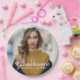 Graduate is written in simple white script over your senior portrait photo for a modern graduation party paper plate. Customize with your name and class of 2023 under the cursive typography on this contemporary, minimalist graduate party decor.