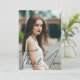 This chic graduation thank you card features sophisticated handwritten black script over a trendy full photo of your graduate. Customize this grad card with a 2nd high school, college, or university photograph on the back below your senior details. The back picture is overlaid with stylish sheer white so you can write your message of thanks.