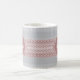 A chic gray and dusky pink knitted striped pattern mug with an ash rose colored quatrefoil monogram badge. Personalize by adding your name and monogrammed initial. This is part of the Harbor Mist Knit Pattern Ash Rose Monogram collection. Flat printed Image, NOT knitted lace.