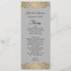 Long and skinny gray wedding table menu done, with graphics of a lacy gold pattern edge, on the top and bottom. Personalize the black text for your special day. Lovely addition to our Chic Gray and Gold wedding set.