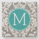 Chic Gray and Teal Damask Pattern Custom Monogram Stone Coaster