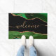 Chic Green Agate Gold Glitter Script Welcome Doormat
