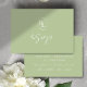 Fresh and lovely with playful elegance. This 2 -sided wedding RSVP response card features a floral framed monogram in white against a green background. The same colors are repeated at the back of the card in a combination of contemporary fonts.