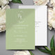 Chic Green Floral Monogram Wedding Invitation