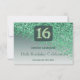 Chic Green Glitter, Sixteen Birthday RSVP Card