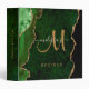Chic Green Gold Glitter Agate Custom Monogram 3 Ring Binder