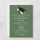 Celebrate your achievement with this stylish graduation party invitation. Featuring classic dark forest green and white typography, accented by a black and gold watercolor graduation cap, this modern design is perfect for an outdoor celebration