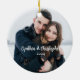 This gorgeous olive green with holly berry Christmas wreath encircles your holiday photo inside of a circle. A chic 2 sided Christmas ornament keepsake for a modern couple. Botanical leaves spring out of the beautiful photograph. Add a 2nd picture on the back.