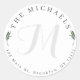 Chic Greenery Monogram Round Return Address Label
