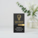 Over at the top is a gold home bulb logo you can use with its faux gold business name directly underneath. Towards the black layer near the base lies your prestigious name and the contact details.