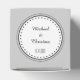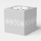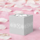 Chic grey personalized favor box for bridal shower or ceremony or any occasion. Has lace look ribbon around box