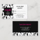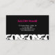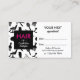 A chic appointment card for a hair stylist in black, white, and magenta with a silhouette pattern of hair stylist tools.