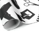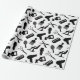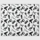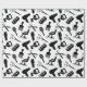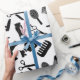 Cool wrapping paper with a black and white pattern of the silhouettes of different hairdresser tools, like scissors, combs, hair dryers, etc.