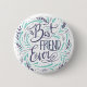 Chic Hand Lettered Best Friend Ever Design with Fun Teal Aqua and navy blue hand drawn leaves, twigs, and dot elements and hand brushed script lettering trendy typography. Great gift for your best friend ever! Custom Button!