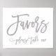 Chic Hand Lettered Silver Wedding Favors Sign