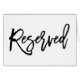 Folded "reserved" sign featuring a modern brush script font in black on a folded card.