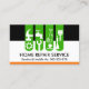 A black-white cover with a brown stripe at the base features a green tab that has a handyman construction tools design. The tools can represent some of the services that you might offer e.g. the hammer-sprocket can represent home remodeling, the faucet-spanner for plumbing, the fork-spade for landscaping and the brush-scrapper for painting. Their usage is left to your own interpretation. Just below this motif is the business name "HOME REPAIR SERVICE" which you can change alongside the contact details.