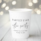 Chic paper cups for your wedding reception that feature "Happily Ever After Party" in elegant typography and a stylish modern script, your first names and reception date.