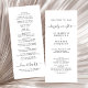 Chic wedding ceremony program flat card that features "happily ever after" and "love + thanks" in an elegant swash script and simple modern typography. The front lists your ceremony events and the back lists your officiant, parents and wedding party along with a thank you message.