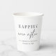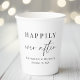 Chic paper cups for your wedding reception, engagement parties, rehearsal dinner, couples showers and other wedding celebrations that feature "Happily Ever After" in elegant typography and a stylish modern script, your first names and wedding date.