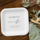 Chic paper plates for your wedding reception, rehearsal dinner, engagement party and other wedding events with "Happily Ever After" in a mix of elegant serif typography and a stylish modern script, your first names and your wedding date.