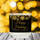 Chic corporate Christmas gifts with Happy Holidays written in elegant gold cursive script under a beautiful border of snowflakes falling on a modern black holiday candle. Customize this professional holiday present with your company or business name.