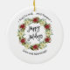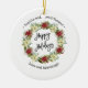 Chic Happy Holidays Script Poinsettia Monogram Ceramic Ornament