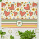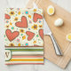 Chic Heart Floral Pattern Monogram Initial Kitchen Towel