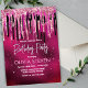 Chic hot pink black drippings glitter monogram invitation