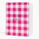 Chic hot pink gingham script name recipe mini 3 ring binder. Personalize with your name and text on front and spine.