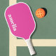 Chic pickleball paddle with your monogram name or initials in a popular bold white font on a hot pink background. You can adjust the position and size of the text in the design tool for shorter or longer names.