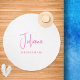 Chic white round beach towel keepsake gift for your bridesmaids, maid of honor or other members of your bridal and bachelorette party featuring her name in a modern hot pink calligraphy script and her role in elegant hot pink serif typography.