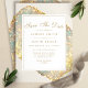 This chic save-the-date card features a stunning iridescent glitter design in shimmering gold and pastel hues. The elegant typography and sparkling accents create a sophisticated look, perfect for announcing your special day in style. Customizable with wedding details, this beautiful card adds a touch of glamour and charm to your wedding stationery.