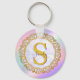 Chic Iridescent Initial With Gold Scrollwork Keychain