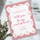 Elevate your maid of honor proposal with our chic Italian-themed card, perfect for the modern bride with a love for all things Italian. This beautifully designed card features delightful red illustrations of iconic Italian symbols such as pizza, pasta, and gelato, framed by a classic red and white checkered border. The elegant script reads, "Will you be my bridesmaid?" followed by the affectionate sign-off, "Con amore." This card adds a touch of sophistication and playfulness to your special moment, making it a must-have for brides planning an Italian-themed wedding or simply wanting to incorporate Italian flair. Say "That's Amore" with style and charm, and make your bridesmaid proposal truly unforgettable.