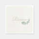 This elegant napkin design features an ivory background with a personalized name written in a delicate handwritten sage green font. A small eucalyptus branch placed beneath the name adds a soft botanical detail that complements the clean minimalist style. The neutral ivory and sage green palette creates a refined and timeless look inspired by modern greenery wedding trends. Personalization allows you to add any name, making these napkins perfect for weddings, bridal showers, engagement parties, birthdays and elegant celebrations. The design can also be transferred to other products and more matching items can be found in the same collection.