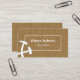 Simple design for a carpenter, builder or handyman business card. The background is brown kraft which reminds the cork wood and natural material. The design contains a carpenter tools vector illustration and your name and speciality to personalize in a white frame.