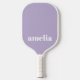 Chic pickleball paddle with your monogram name or initials in a popular bold white font on a pastel lavender purple background. You can adjust the position and size of the text in the design tool for shorter or longer names.