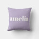 Cute pillow that features your monogram name or initials in a popular bold white font and a pastel lavender purple background. You can adjust the size of the font in the design tool for shorter or longer names. Perfect bedroom and dorm room decor.