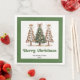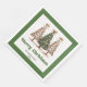 Modern Christmas dinner napkins featuring three minimalist watercolor Christmas trees in earthy green and gold with playful leopard pattern accents and hand-drawn lettering. A stylish choice for festive tables, these napkins are personalized with your custom name, adding a unique and elegant touch to your holiday dinner or Christmas party décor. 🎄✨