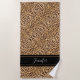 Soak up the sun rays with this Chic Leopard Print Black Script Personalized Beach Towel. It has an elegant design with a brown and black animal pattern background and black horizontal stripe on lower area. Personalized with name in modern white handwritten script lettering. Click "personalize template" option and enter your name or custom text.