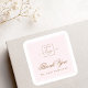 Chic light pink custom logo thank you square sticker