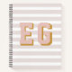 The custom monogram notebook is a great gift for women. To personaize simply change the monogram initals on this personalized gift. Features a light pink and gold boho color scheme aith large varsity font. The customizable monogram adds a unique flair, making it a statement accessory that reflects your individual style.
