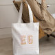 The custom monogram tote bag is a great gift for women. To personaize simply change the monogram initals on this functional tote bag. Features a light pink and gold boho color scheme aith large varsity font. Whether you're heading to the office, the beach, or a shopping spree, this tote bag effortlessly combines practicality with a touch of sophistication. The customizable monogram adds a unique flair, making it a statement accessory that reflects your individual style.