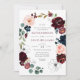 Chic Line Art Burgundy Navy Floral Blossom Wedding Invitation