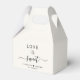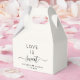Chic light cream wedding favor box featuring "love is sweet" in simple modern typography and an elegant script with swashes, your first names joined together by a heart and your wedding date.